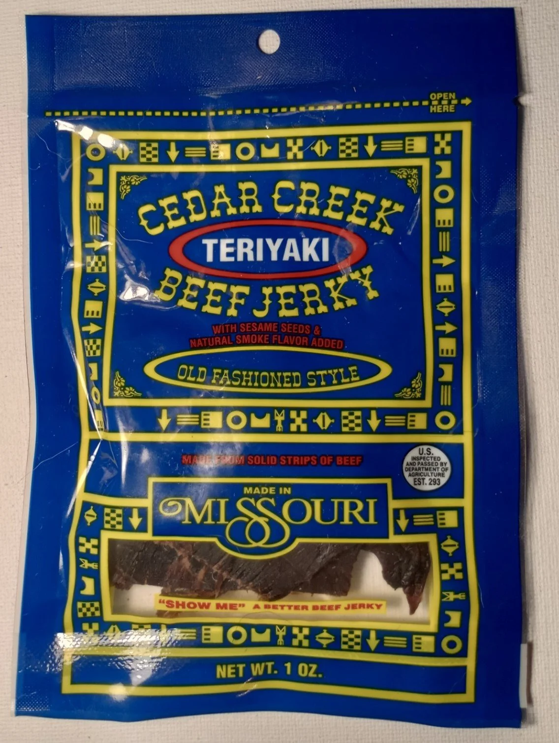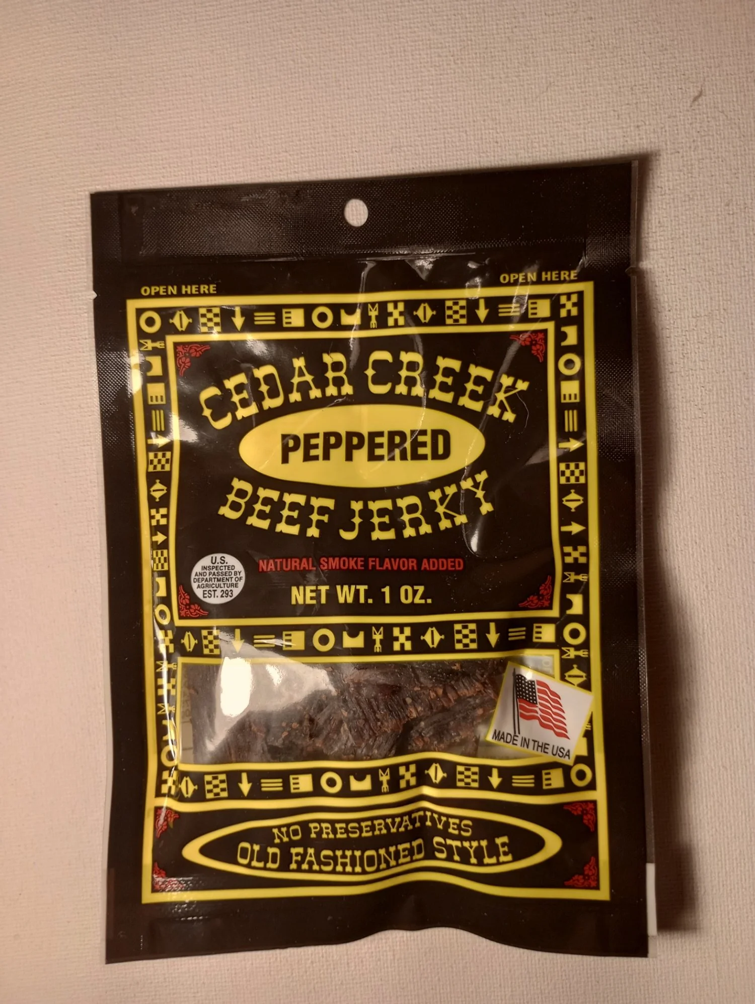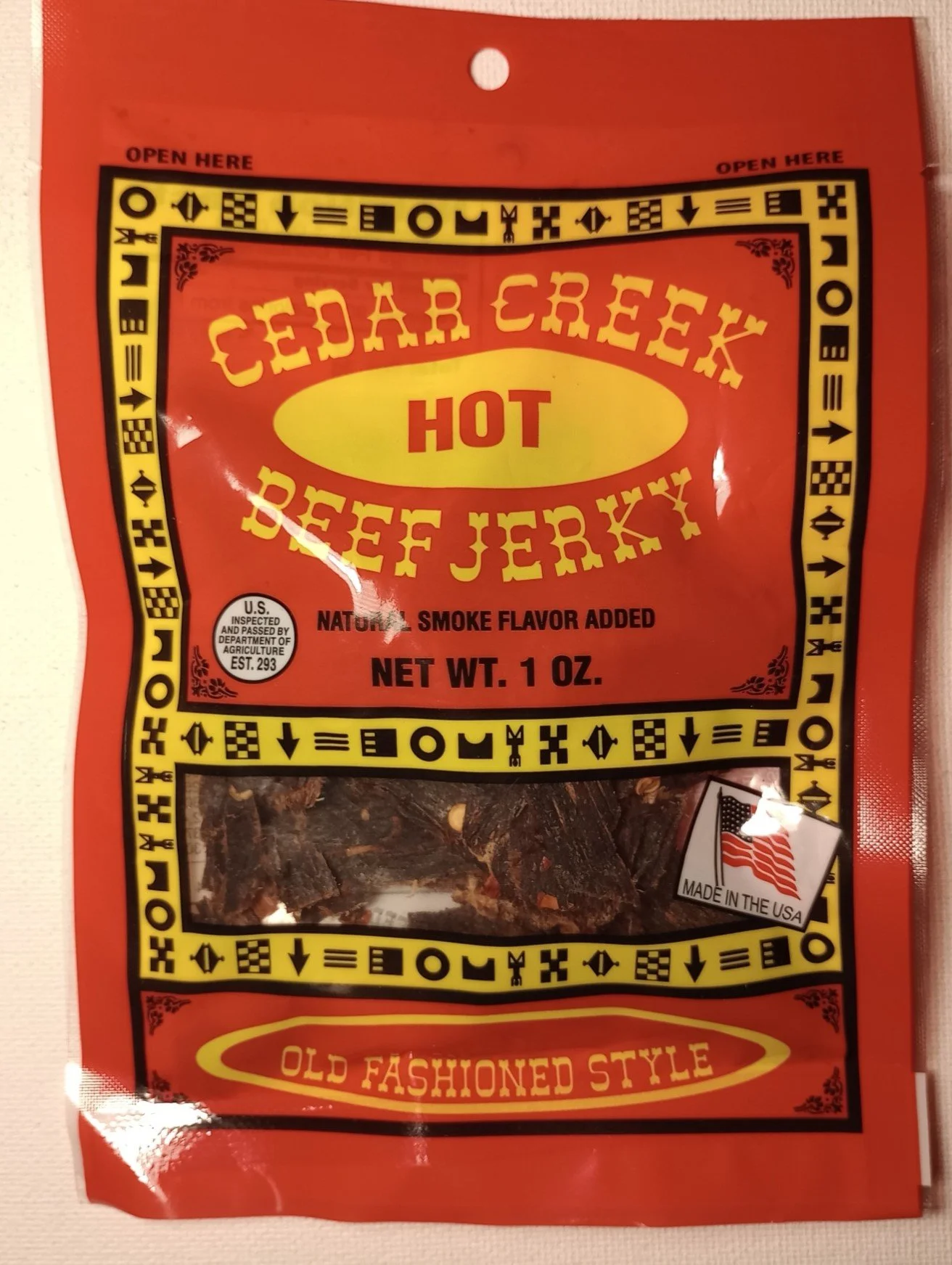 1oz Cedar Creek Beef Jerky- Pepper $3.05 1oz Cedar Creek Beef Jerky- Teriyaki $3.05 Cedar Creek Beef Jerky - Hot 1oz $3.05 1oz Hot-T-Yaki Cedar creek jerky $3.05 4oz Cedar Creek Jerky- Original $8.50 4oz Cedar Creek Jerky- Hot-T-Yaki $8.50 4oz Cedar Creek Jerky- Teriyaki $8.50 4oz Cedar Creek Jerky- Pepper $8.50 4oz Cedar Creek Jerky- Hot $8.50